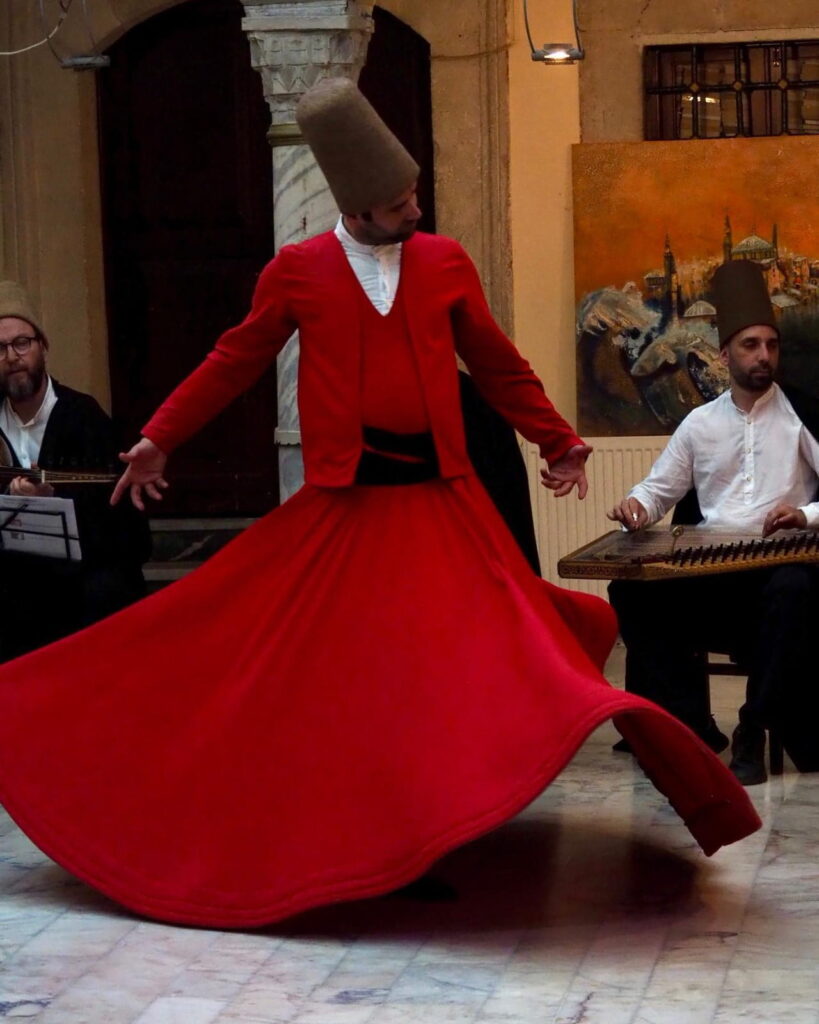 • Die Atmosphäre: Gedämpftes Licht, der Duft von Weihrauch und die tiefen Klänge der Ney (einer traditionellen Flöte).